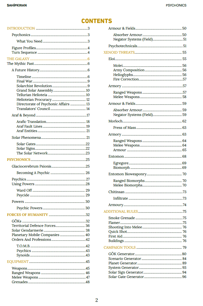It expands the core rules into a far-future setting shaped by psychonic phenomena, alien archaeology, and decaying high technology, while preserving Sahipkıran’s fast, abstract skirmish logic. The supplement is miniature-agnostic and fully compatible with common 28–32mm sci-fi ranges, including Games Workshop miniatures.