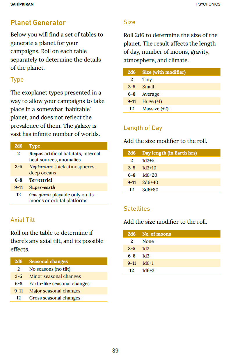 Don't want to flip through tables? The interactive web-based generators for the game are available at the Tactical Command Console. You can access them directly via browser to instantly create mission scenarios, planets, star systems, solar signs, and solar gates.